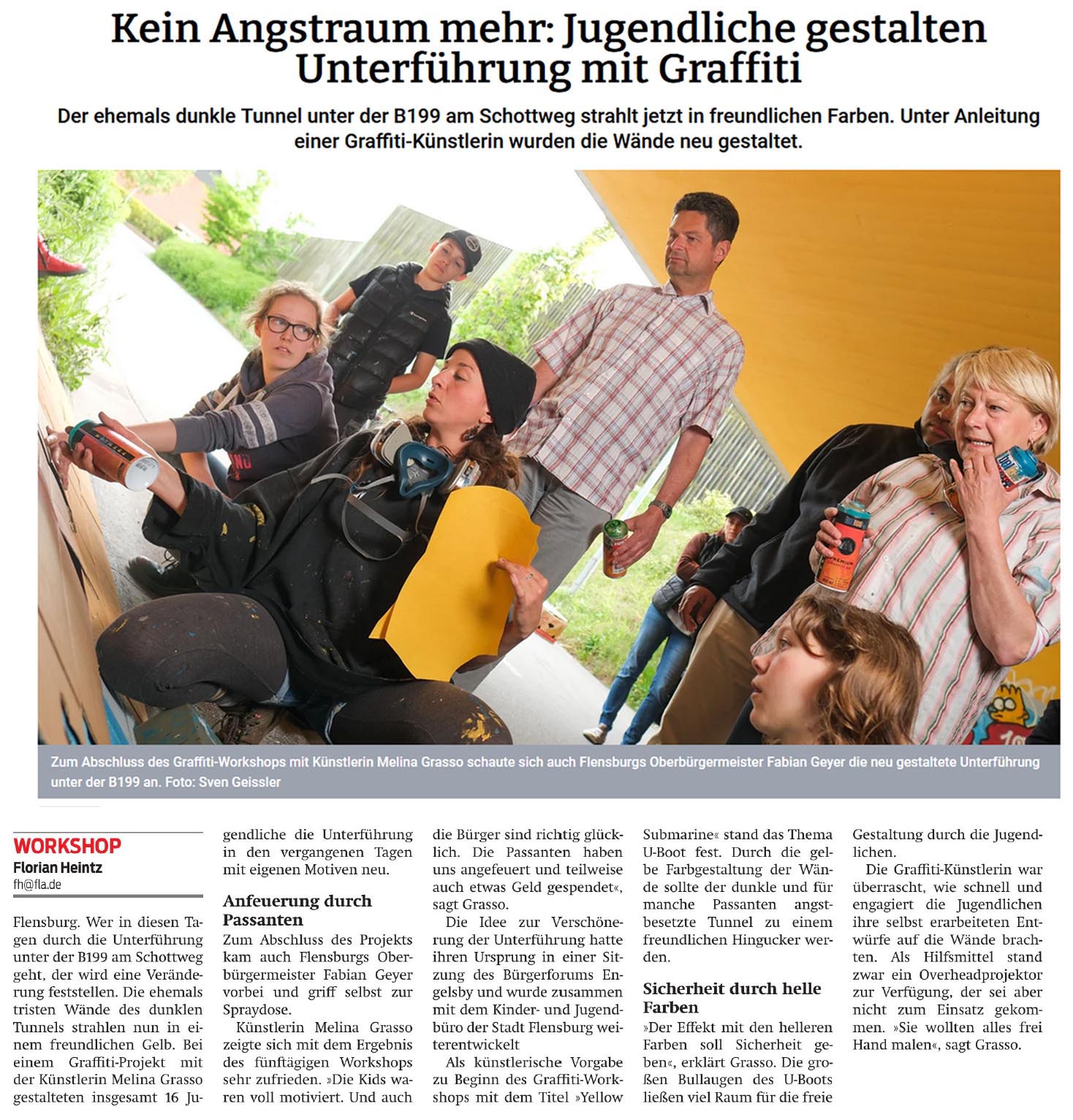 Meine zurzeitige Hauptbeschäftigung sind Jugendworkshops. Wenn Du oder Ihr den Umgang mit der Spraydose üben wollt oder einen themenbezogenen Workshop machen möchtet, stehe ich Euch für die individuelle Planung und Umsetzung zur Verfügung.